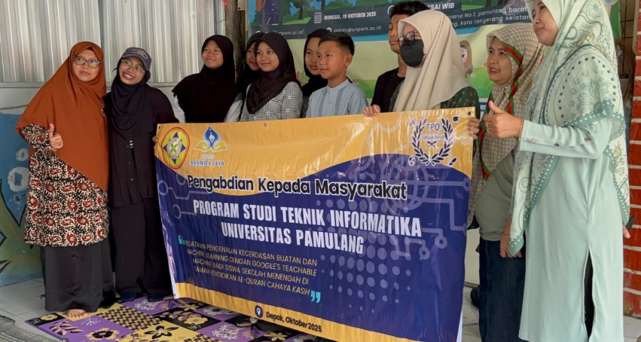 Bojongsari Baru, Oktober 2025, dosen program studi Teknik Informasika, fakultas Ilmu Komputer, Universitas Pamulang Bersama dengan mahasiswa Teknik Informatika telah menyelenggarakan Pengabdian kepada Masyarakat (PKM) yang menjadi salah-satu dari Tri Dharma dosen Perguruan Tinggi Universitas Pamulang (UNPAM). Tim PKM yang terdiri dari Ibu kasih, S.Pd., M.Pd, selaku ketua pelaksana PKM, Ir. Bodi Santoso, M.T., sebagai nara sumber, dan ibu Uliyatunnisa, S.Kom., M.Kom sebagai anggota dari dosen serta diikuti mahasiswa Teknik Informatika yaitu Agitsna Naura Azqia, Fira Amanda Nurindah Sari, Aisyah Nurul Hidayah, Zulaizah Rahayu, dan Nurul Fauziah. Kegiatan PKM yang berjudul Pelatihan Pengenalan Kecerdasan Buatan dan Machine Learning dengan Google’s Teachable Machine Bagi Siswa Sekolah Menengah dilaksanakan oleh tim dosen Pengabdian Kepada Masyarakat (PKM) dari program studi Teknik Informatika (TI) S1 yang dibuka oleh ketua PKM yaitu ibu Kasih, S.Pd., M.Pd, dalam kata sambutannya yaitu mengenai proses belajar mengajar merupakan salah satu proses terpenting dalam kehidupan manusia. Proses pembelajaran dikatakan berhasil apabila berorientasi pada tujuan pembelajaran yang dilakukan guru, untuk meningkatkan kemampuan dan perkembangan anak didik sesuai dengan zamannya khususnya dalam teknologi informasi yaitu mengenai kecerdasan buatan (AI) yang sedang hangat dibicarakan ditengah masyarakat dapat memberikan pemahaman awal kepada siswa mengenai konsep kecerdasan buatan (AI), serta memperkenalkan pemanfaatan teknologi Machine Learning dengan cara yang menyenangkan dan mudah dipahami oleh para siswa melalui platform Google’s Teachable Machine. Kami berharap pelatihan ini dapat menumbuhkan semangat dan minat para siswa untuk berkarya dan berinovasi di bidang teknologi digital. sekaligus menjadi langkah awal menuju generasi yang handal, kreatif, inofatif dan cerdas di era transformasi digital. erlaksananya kegiatan PKM ini berkat dukungan dari berbagai pihak yang telah membantu terselenggaranya kegiatan ini diantaranya para panitia, narasumber, dan semua pihak yang telah berkontribusi dengan tenaga, pikiran, maupun dukungan lainnya. Semoga kegiatan ini berjalan lancar, bermanfaat, dan memberikan wawasan baru bagi kita semua.